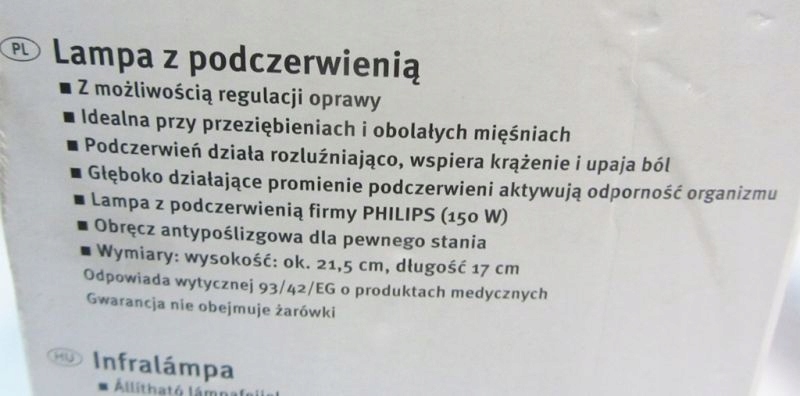 Lampa na Podczerwień SilverCrest Philips 100W Lecznicza dla DzIeCi Przydatna dla dzieci na przeziębienia i choroby 9999 zł Obserwuj. Możesz także zapoznać się z odpowiedziami na najczęściej zadawane pytania aby uzyskać. Podczerwień działa rozluźniająco wspiera krążenie i likwiduje ból promienie podczerwieni aktywują odporność organizmu obręcz antypoślizgowa 215 x 17 cm 150 W 3 lata gwarancji lampa z podczerwienią firmy Philips _____ Oferta ważna od piątku 7 stycznia 2010 r.